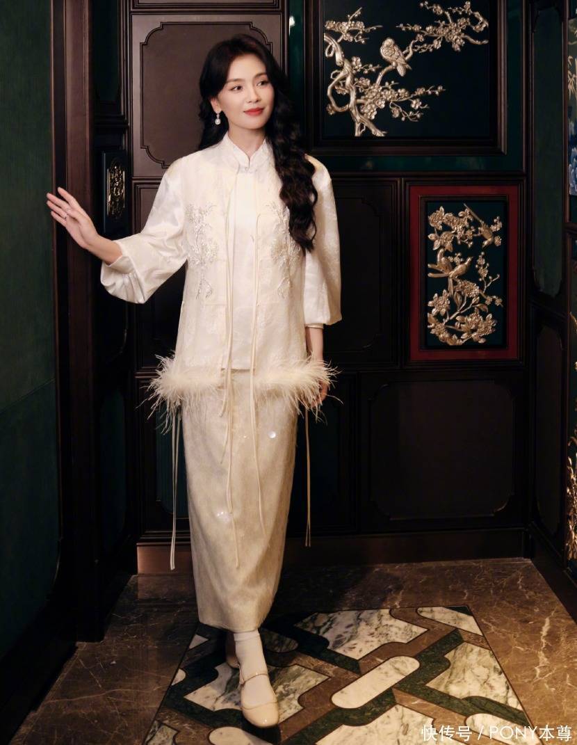她的国泰民安脸和新中式服饰适配度好高!比如这次她晒出的美照,一袭毛毛边装饰的新中式上衣,颜色清新雅致,搭配复古长卷发造型,佩戴珍珠耳环,整个人看起来优雅古典,魅力四射!